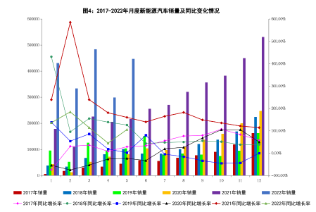 2022年5月,隨著汽車產業鏈全面復工復產,汽車市場呈現加速恢復態勢,產銷分別完成192.6萬輛和186.2萬輛,同比分別下降5.7%和12.6%,降幅比4月分別收窄40.4個百分點和35.0個百分點。新能源汽車產銷高速增長,產銷同比均增長1.1倍。
